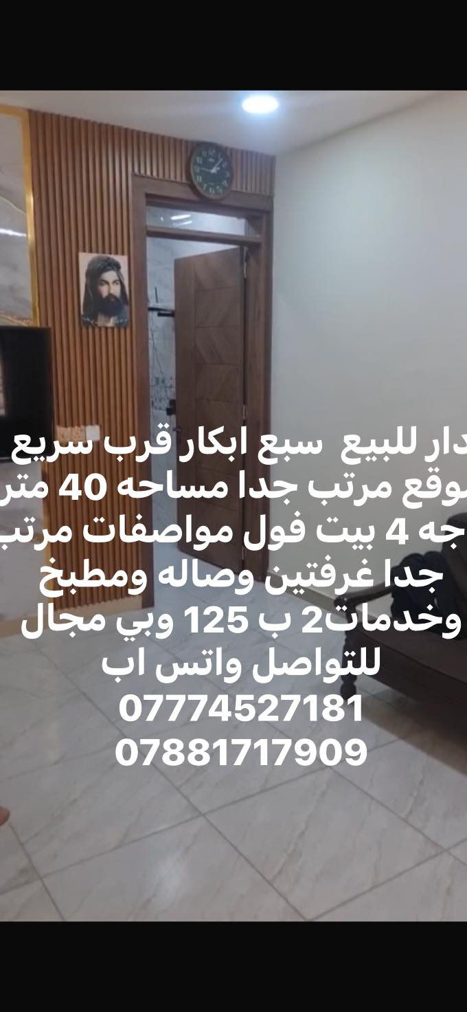 سلام عليكم دار للبيع مساحه 40 متر واجه 4 بيت مرتب كلش فول مواصفات يحتوي على غرفتين وصاله ومطبخ وخدمات 2 جديد بناء سعر 125 وبي مجال للتواصل واتس اب *********** واتس اب *********** #صليخ600 #تونس #صليخ_شارع_600_مقابل_دكتورسيف_سمير #صليخ_حي_تونس #صليخ_شارع_600❤️🔥 #شعبية #شعباوي #شعباوي