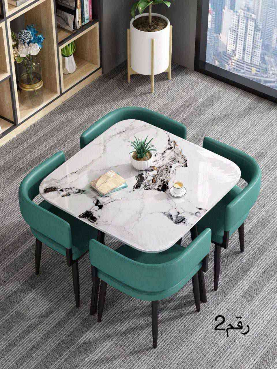 ميز طعام • ٤ كراسي • بورسلين مرمر