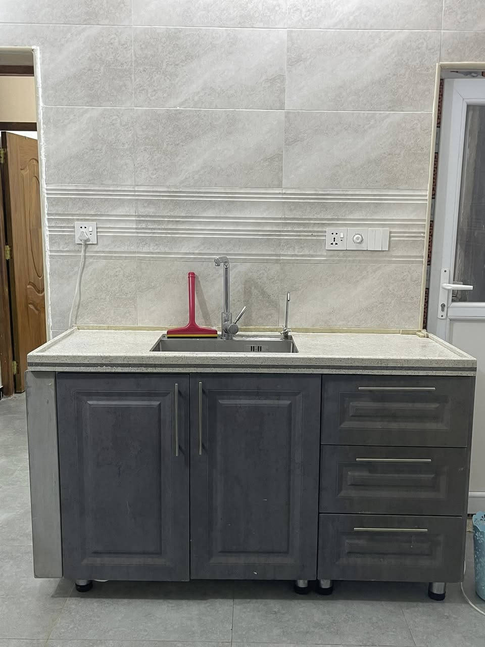 كاونتر خشب MDF • متر ونص • سنك مرمر ١٫٢٠م