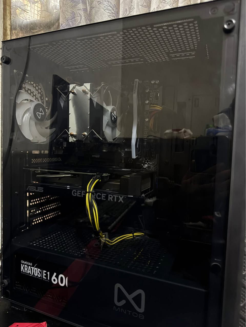GPU RTX 4060 8GB ASUS DUAL OC :كرت الشاشه RYZEN 5 7600 BOX :المعالج B650M S2H GIGABYTE DDR5 :المذر بورد RAM (16X1) 5200MHZ DDR5 RGB T.FORCE :الرامات E900 1TB NVME M.2 3DNAND 2000M HEATSINK- DAHUA- E900N1TB PSU GAMDIAS KRATOS E1 600W RGB :باور سبلاي MNTOB MN-210 ALPHA DUAL RGB CPU COOLER :نوع الكيس MNTOB MN-2080B STORM MESH 4FAN RGB بعده بالضمان جديده كل الغراض بيها مجال حك الجيه المحاويل, بابل **إذا كنت صاحب هذا الإعلان وتريد حذفه لأي سبب، رجاءا أرسل رسالة إلى الدعم الفني**