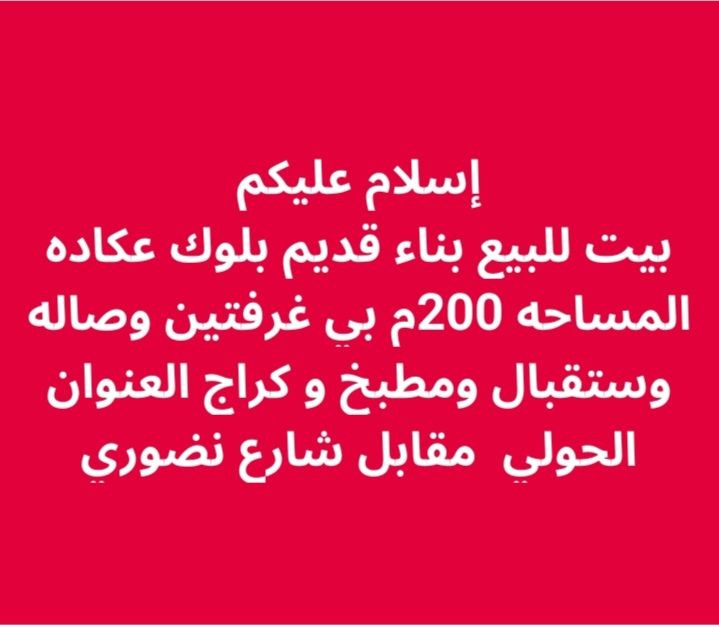 إسلام عليكم بيت للبيع الحولي مال حي العسكري شارع نضوري بيعد عن الحولي 500متر بناء قديم بلوك عكاده السعر 27مليون ***********