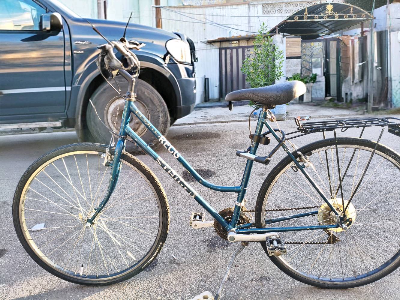 هذا بايسكل ممتاز بلون أزرق، بحالة جيدة جدًا وجاهز للاستخدام. يمتاز بإطار قوي ومتين، ومجهز بحامل خلفي يمكنك وضع أغراضك الشخصية عليه. مناسب للاستخدام اليومي أو التمتع بجولات ممتعة في الهواء الطلق.