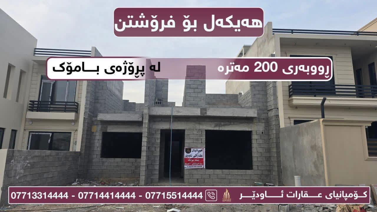 ♦️بەرژەوەندی تۆ قازانجی ئێمەیە ♦️ ♦️#ھــەیکەل بۆ #فـرۆشتن لە پڕۆژەی #بــــامۆک. ✅ ڕووبـــــەری 200 مەترە. ✅ دوو قــــــاتـــــە. ✅ ڕووی خۆرھەڵاتە. ✅ بەردەمی حەدیقەیە. 🔻بۆ زانیاری زياتر سەردانی ئۆفیسی عقاراتی ئاودێر بکەن 🔻ياخود پەیوەندی بکەن بە ژ.مۆبایل *********** *********** ناونیشان ئۆفیسی سەرەکی عقاراتی ئاودێر : کەلار_شەهیدان_بەرامبەر ساحەی سێیەم. لقی دووەمی کۆمپانیای عقاراتی ئاودێر : کــەلار _ ناو بــازار _ کۆڵانی زەوی فرۆشەکان .