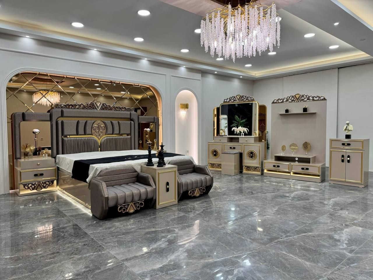 غرفة مرمري • ٧ قطع • سرير ١٦٠×٢٠٠