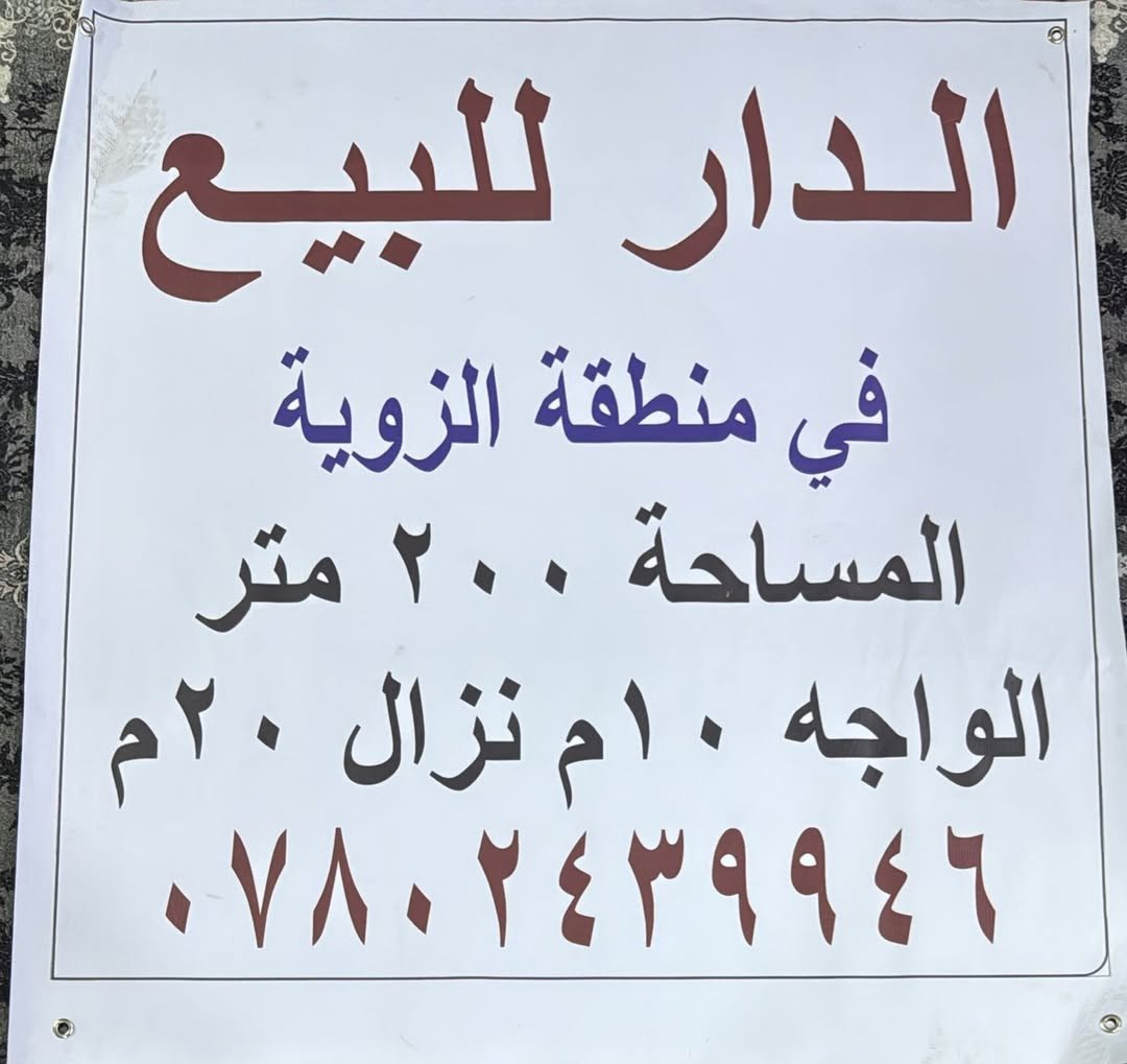 السلام عليكم بيت للبيع بلكراده مقابل مدرسه عارف البصري المساحه 200م النزال 20 الواجه 10 البيت يتكون من طابقين الطابق الأول استقبال +غرفه نوم +حديقه وكراج الطابق الثاني سويت معزول +غرفه + مطبخ الطابق الأول معزول عن الثاني بناء البيت 1990 سند مستقل التحويل مباشر