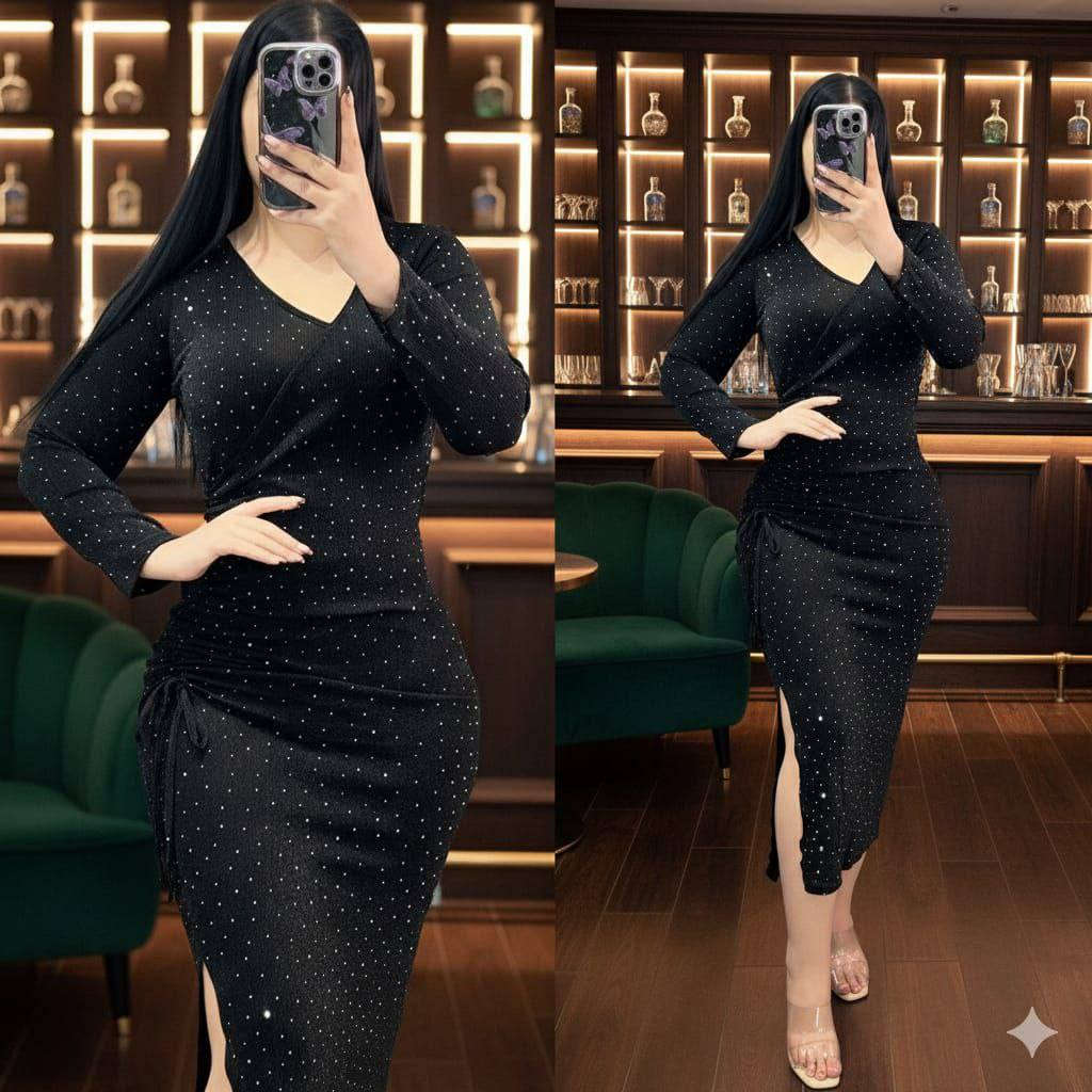 فستان أنثوي • لمعة ستراس • فري سايز ٥٠-٨٥ كيلو