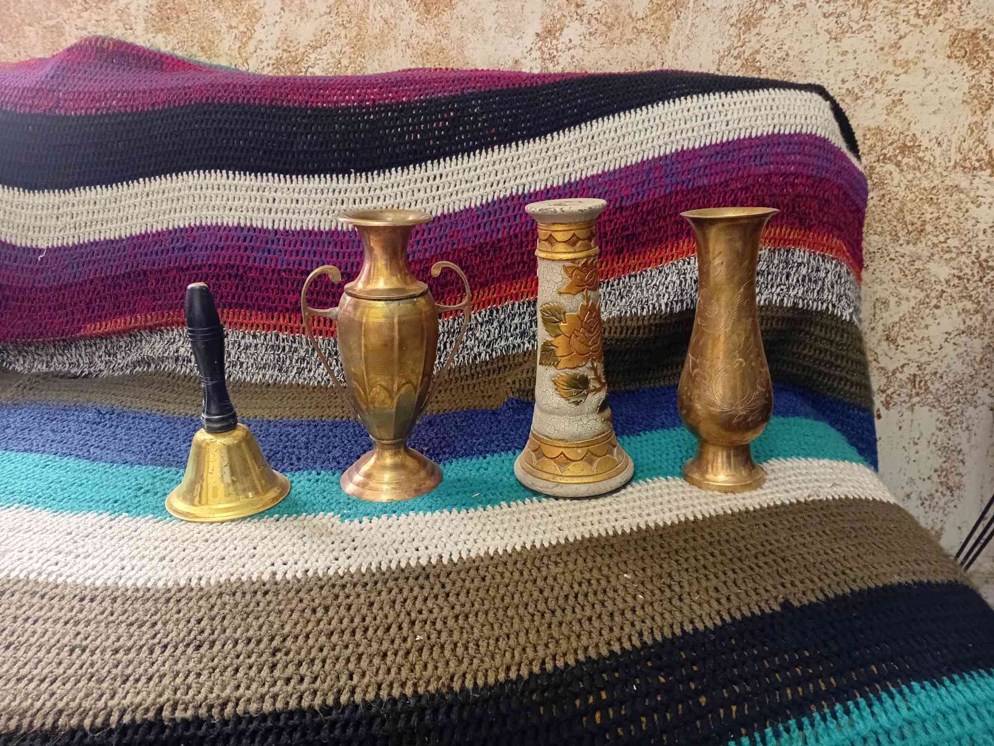فازات نحاس عدد٢ شمعدان رزن وجرس، ٤قطع بسعر ١٥دينار فقط.٠٧٩٥٢٦٩٧٤٠ **إذا كنت صاحب هذا الإعلان وتريد حذفه لأي سبب، رجاءا أرسل رسالة إلى الدعم الفني**