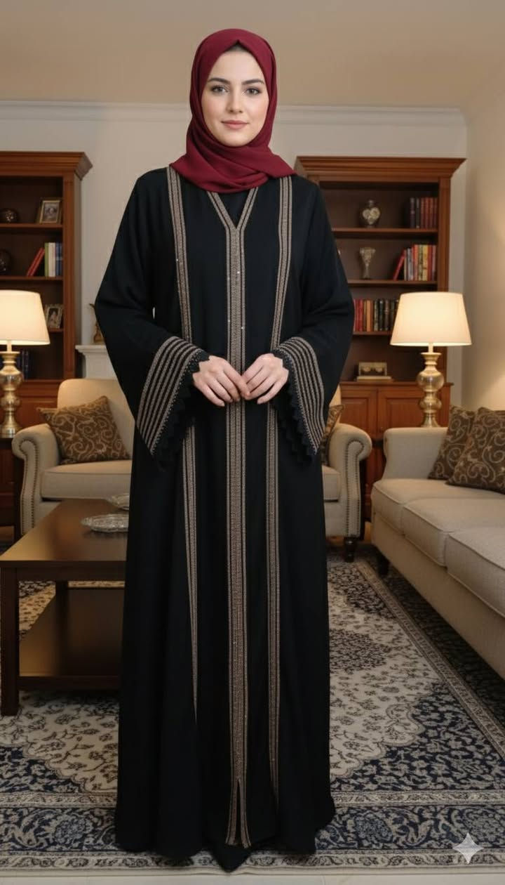 عباية خليجية • حرير أماراتي • ستراس حراري