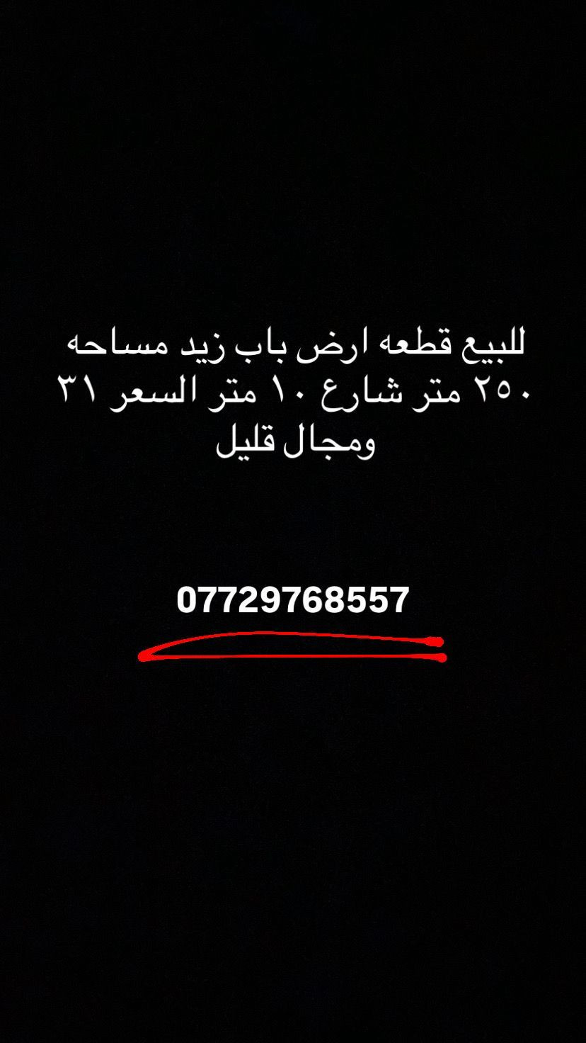 قطعه ارض باب زيد مساحه ٢٥٠ متر السعر ٣١ وبيها مجال كلش قليل رجائآ بس شراي يخابرني ***********