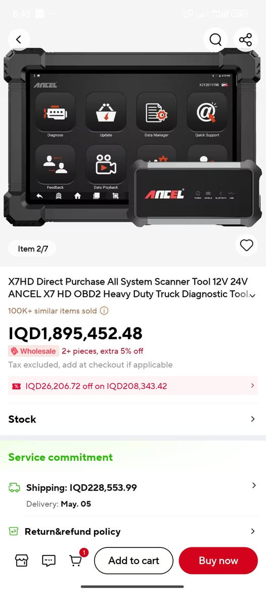 Ancel x7 HD اجهزة کشف اعطال السیارات کبیر 24 V او 12 V او فحس JCB لم يتم تفعيله إلا منذ تسعة أشهر نظافة %100 السعر 900 الف **إذا كنت صاحب هذا الإعلان وتريد حذفه لأي سبب، رجاءا أرسل رسالة إلى الدعم الفني**