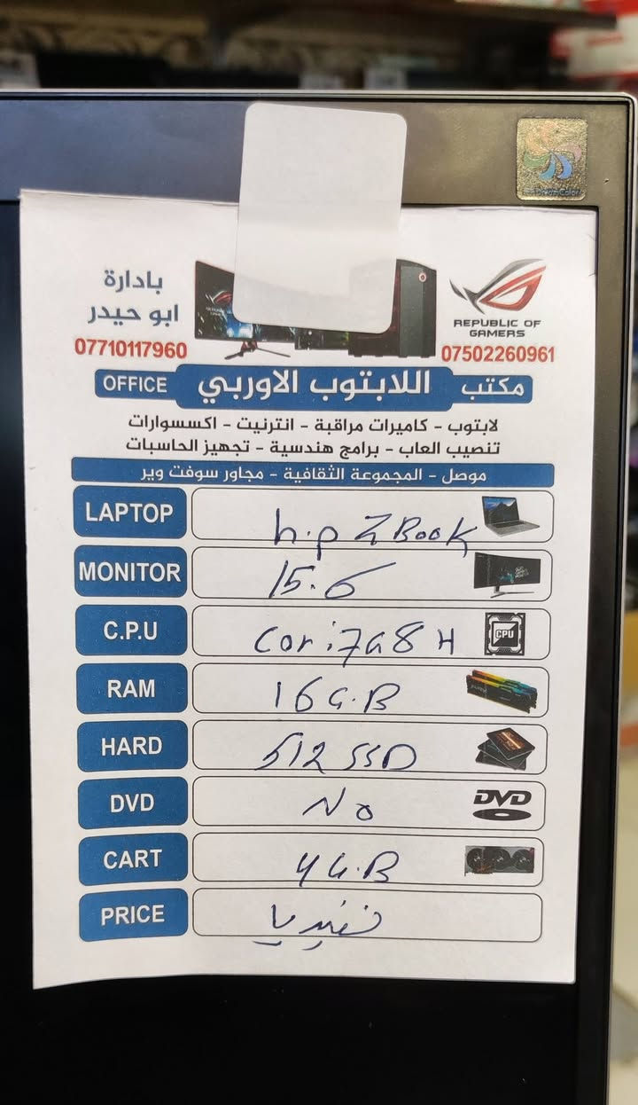 💻 قوة الأداء الهندسي في متناول يدك! 💻 لأصحاب الذوق الرفيع والباحثين عن الأداء الخارق في برامج التصميم والألعاب، يقدم لكم مكتب اللابتوب الأوربي وحش الأداء من شركة HP: 🔥 HP ZBook - Mobile Workstation 🔥 الخيار الأول للمهندسين والمصممين (Workstation) الذي يجمع بين الأناقة والقوة التحملية العالية. المواصفات التقنية: المعالج (CPU): Intel Core i7-8850H (جيل ثامن فئة H عالية الأداء). الذاكرة (RAM): 16GB لضمان سلاسة تامة في تعدد المهام. التخزين (SSD): 512GB SSD لسرعة فائقة في التشغيل ونقل البيانات. كرت الشاشة (GPU): NVIDIA (قوة رسومية مثالية للتصميم والمونتاج). الشاشة: 15.6 بوصة بدقة ووضوح عاليين. ✨ لماذا تختار HP ZBook؟ ✅ تصميم معدني متين يتحمل العمل الشاق. ✅ نظام تبريد متطور مخصص لساعات العمل الطويلة. ✅ مثالي لبرامج (AutoCAD, Premiere, Photoshop) وألعاب الفيديو. 📍 العنوان: موصل - المجموعة الثقافية - مجاور سوفت وير. 📞 للحجز والاستفسار: *********** (أبو حيدر) *********** مكتب اللابتوب الأوربي - جودة أوربية بضمان حقيقي.