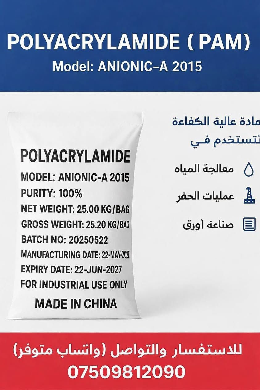 متوفر الان (PAM) POLYACRYLAMIDE POLY ALUMMINIUM CHLORIDE (PAC) 0750 981 2090