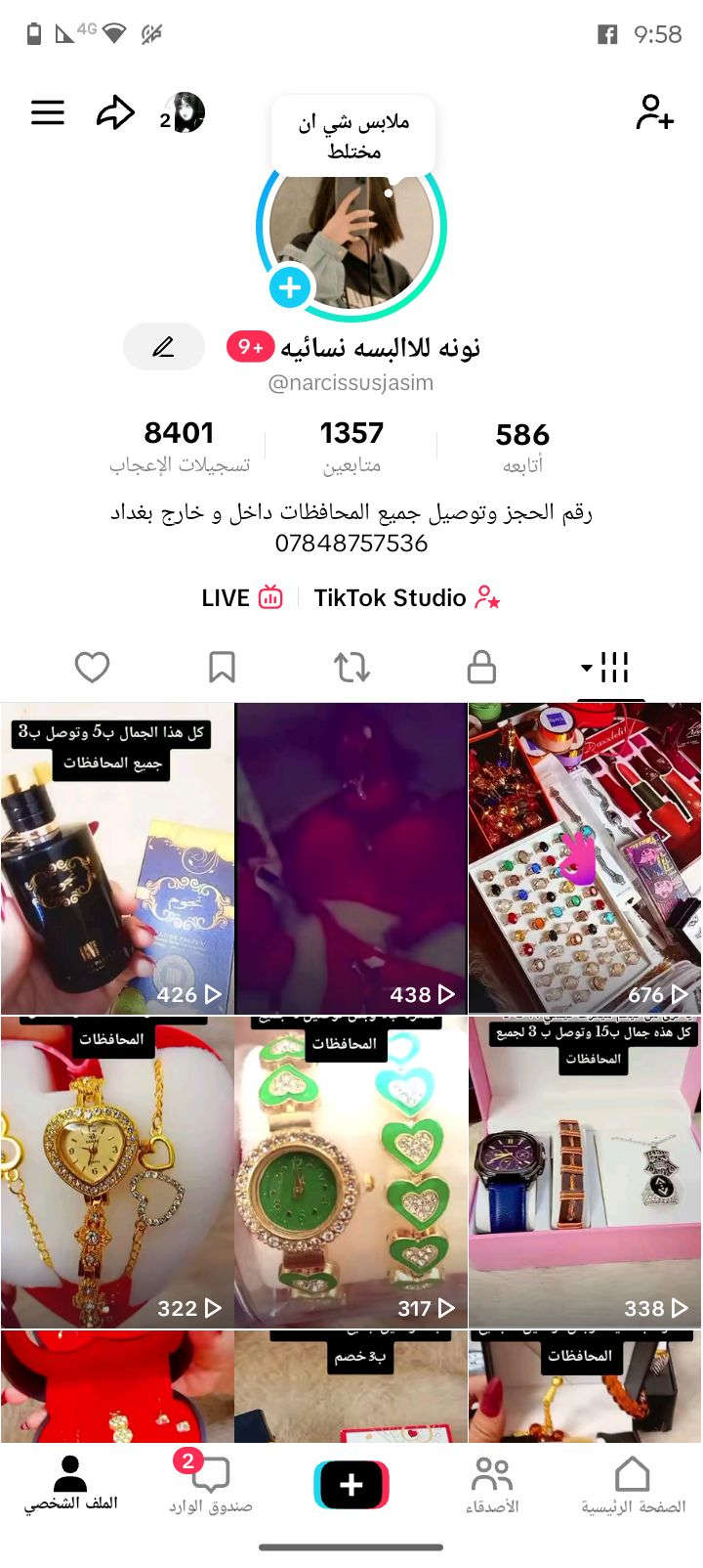 سلام عليكم بنات شباب ممكن متابعه ملابس شي ان رجالي ملابس اطفال ونسائي اسلبر واحذيه كبار وصغار لانجري بسعارمناسبه وني بت منطقتكم وابيع عل فيس هم افتح بث وعل تكتك **إذا كنت صاحب هذا الإعلان وتريد حذفه لأي سبب، رجاءا أرسل رسالة إلى الدعم الفني**