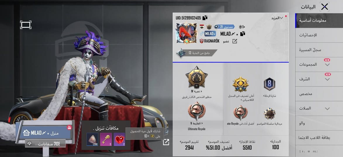 حساب ببجي • لفل ٧٧ • بغداد المشتل