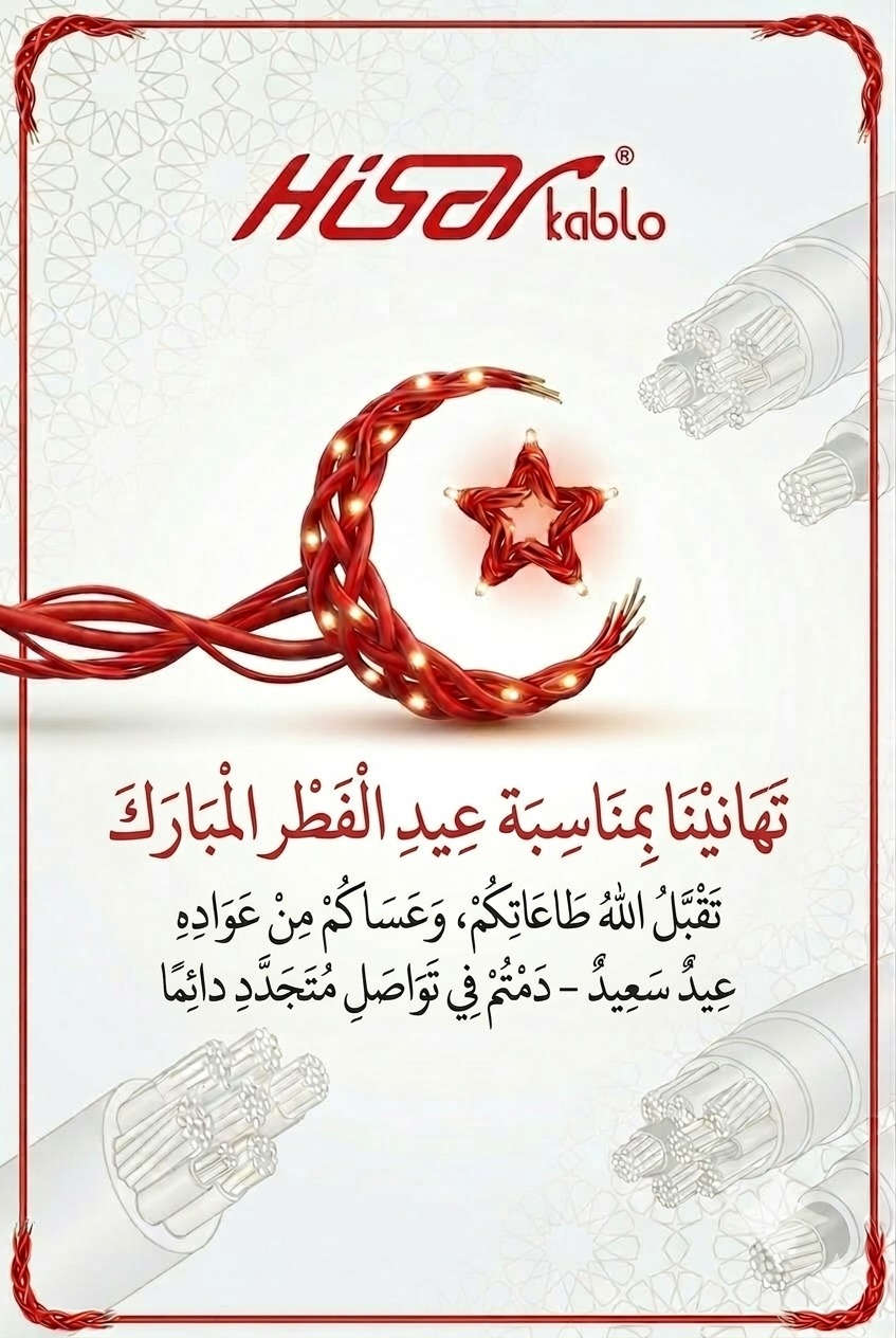 كل عام وأنتم بألف خير، ولتبقى روابطكم مع أحبائكم قوية مثل كابلاتنا عالية الجودة! 🏭⚡#HİSARKABLO **إذا كنت صاحب هذا الإعلان وتريد حذفه لأي سبب، رجاءا أرسل رسالة إلى الدعم الفني**