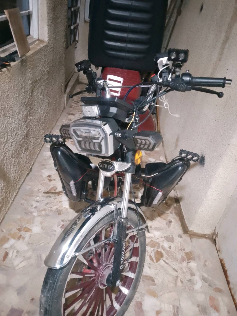 دراجة نارية سونلينك 200 للبيع بحالة ممتازة. اللون الأحمر اللامع مع تصميم أنيق وعصري. الدراجة مزودة بعدادات رقمية وإضاءة LED. مناسبة للتنقل داخل المدينة والسفر القصير. للاستفسار أكثر والتفاوض على السعر، يرجى التواصل.