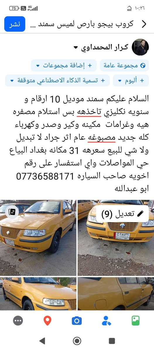 سمند ٢٠١١ • كير ومحرك كفاله • بغداد الحسينيه الراشديه