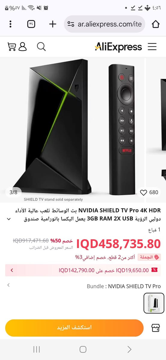 📺 NVIDIA SHIELD TV Pro - أقوى جهاز ترفيهي منزلي 🚀 إذا كنت تبحث عن الأداء الأعلى والاستقرار التام، فإن Shield TV Pro هو الخيار الأول لمحترفي البث والألعاب. 💡 أبرز المواصفات التقنية: • المعالج: NVIDIA Tegra X1+ أسرع بنسبة 25% من الجيل السابق. • الدقة: دعم كامل لـ 4K HDR مع تقنية ترقية الصورة المتقدمة بالذكاء الاصطناعي (AI Upscaling). • الصوت والصورة: يدعم Dolby Vision HDR و Dolby Atmos لتجربة سينمائية متكاملة. • الذاكرة: رام 3 جيجابايت مع مساحة تخزين 16 جيجابايت (قابلة للتوسيع عبر USB). • النظام: يعمل بنظام Android TV الرسمي مع دعم كامل لمتجر Google Play. • الألعاب: دعم خدمة الألعاب السحابية GeForce NOW وتحويل الجهاز لمنصة ألعاب قوية. 🔥 المميزات الإضافية: ✅ منافذ USB 3.0: لتوصيل هاردسك خارجي أو وحدات تحكم. ✅ Plex Media Server: الجهاز يعمل كخادم ميديا متكامل (Built-in). ✅ التحكم الصوتي: دعم كامل لمساعد جوجل الصوتي (Google Assistant) و Alexa. ✅ ريموت متطور: إضاءة خلفية للأزرار، مستشعر حركة، وخاصية البحث عن الريموت عند ضياعه. الجهاز / مستعمل بحالة ممتازة) ,للحجز والاستفسار التواصل معي على ماسنجر **إذا كنت صاحب هذا الإعلان وتريد حذفه لأي سبب، رجاءا أرسل رسالة إلى الدعم الفني**
