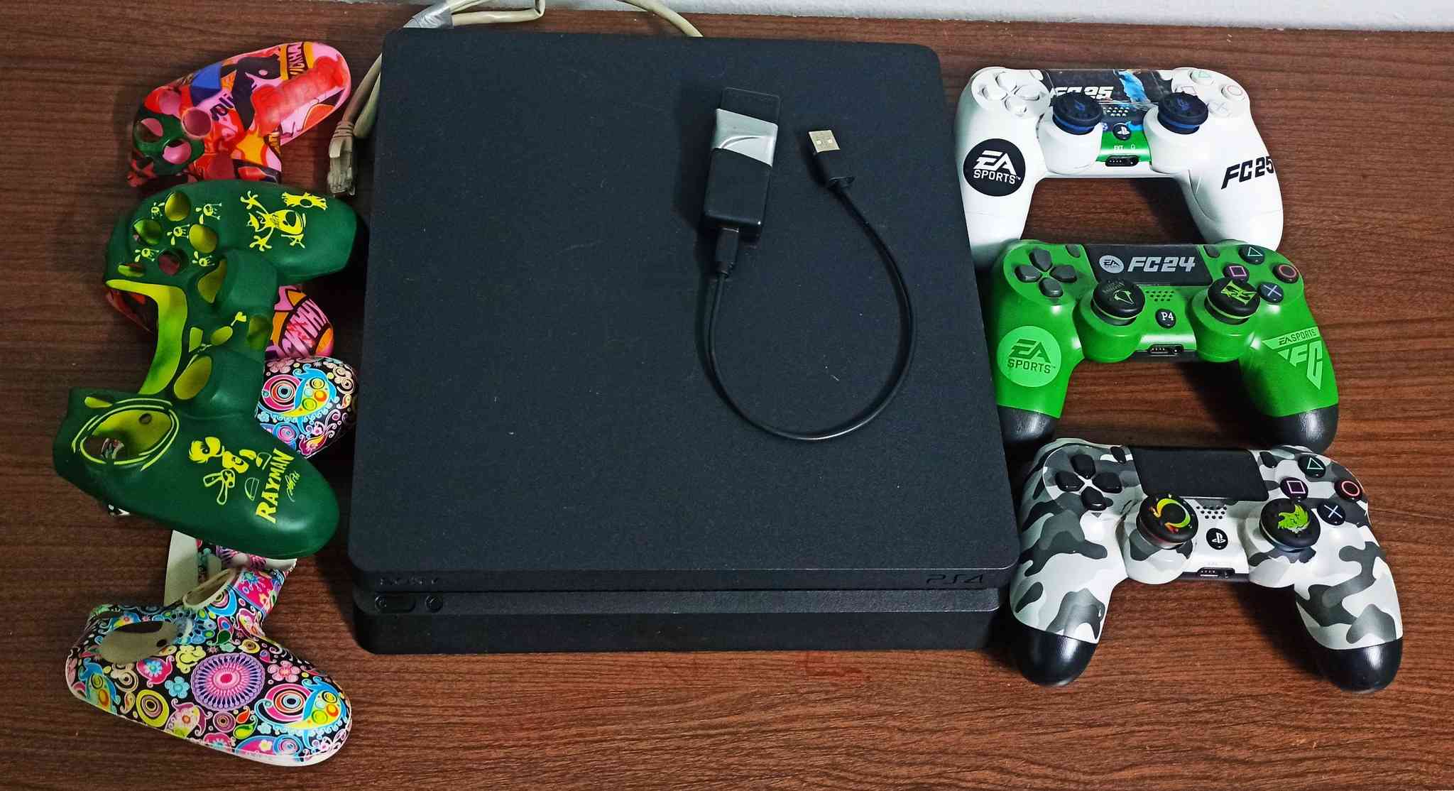 بلي PS4 فور سلم للبيع نضافة 90% الجهاز مساحة الخزن 1 تيرا مهكر نسخه 11.0 ويا 3 جوستك وحده اصليه 2 تجاري وياهم جلاتين بعد مثل ما موضح بالصورة يوجد 6 العاب من ضمنهم بيس2018 والثانية 2026 عنوان موصل **إذا كنت صاحب هذا الإعلان وتريد حذفه لأي سبب، رجاءا أرسل رسالة إلى الدعم الفني**