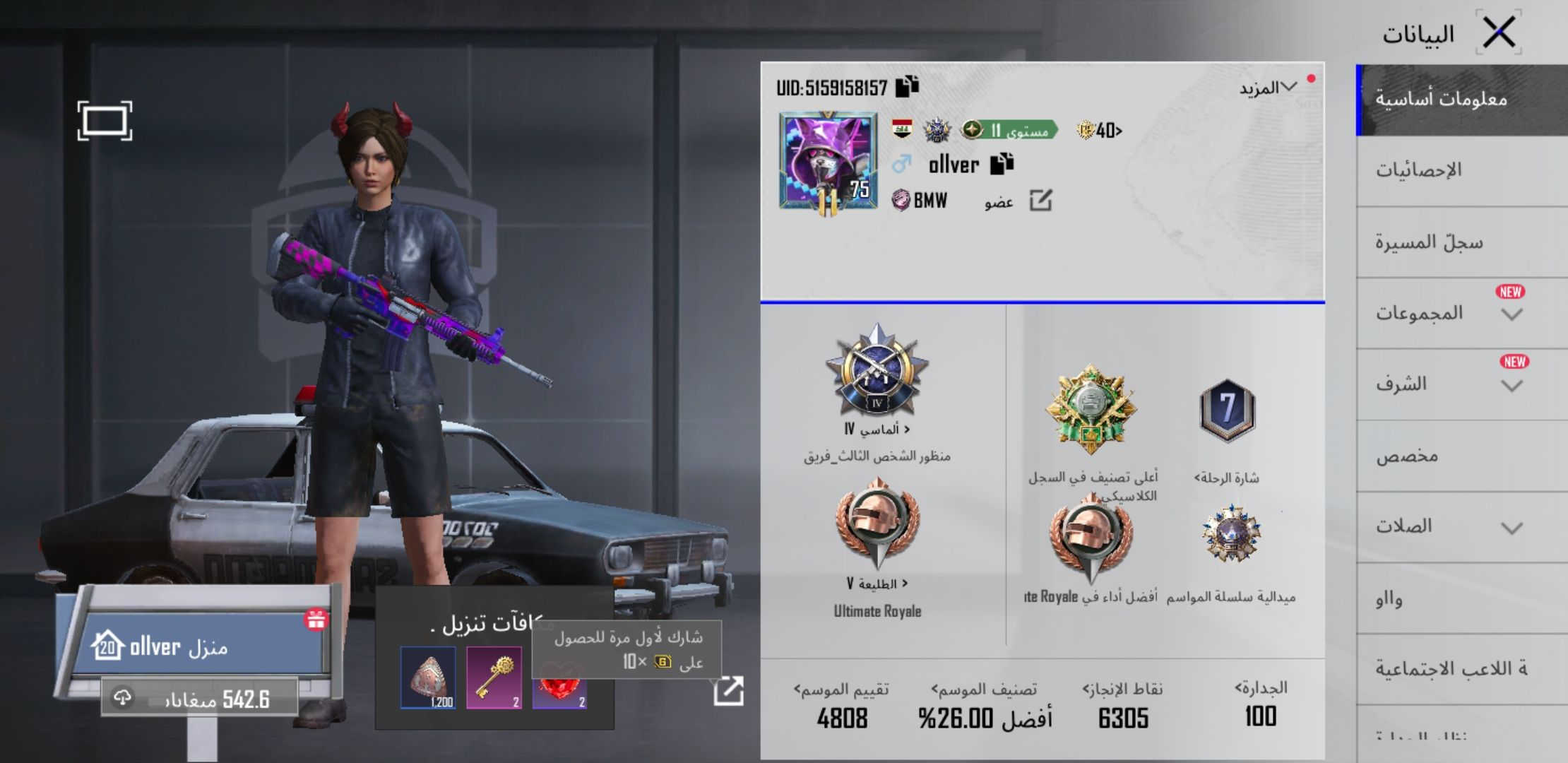 حساب ببجي • بدلة الهائم • نجازات ٦٥٠٠
