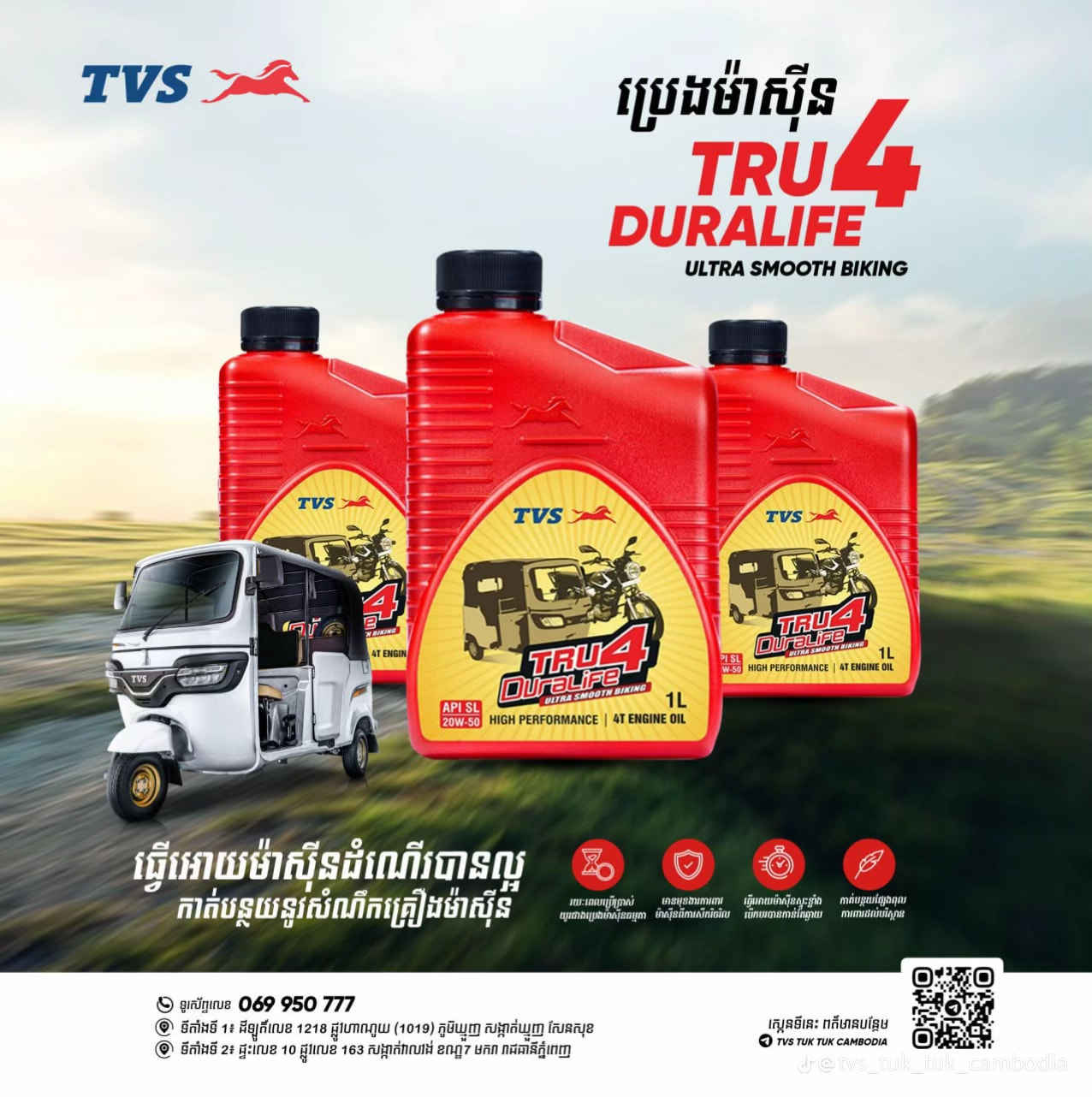 زيت ال TVs 🔥١ لتر يوفر حماية للمحرك ويزيد عمر محرك دراجتك فترات تبديل الدهن طويله جدا لايتأثر بالظروف الجويه درجة اللزوجة 20.w50 وبسعر 7الف دينار لا غير يستعمل للتك تك ويستعمل لجميع دراجات ذات محرك زنجيل داخلي متوفر بمعرض الماهر للدراجات عنوان المعرض. ديالى جديدة الشط منطقه القصيرين ويوجد توصيل لكافة انحاء العراق عن طريق ارسال طلبك الى واتساب او بالاتصال على الارقام ***********واتساب ***********واتساب
