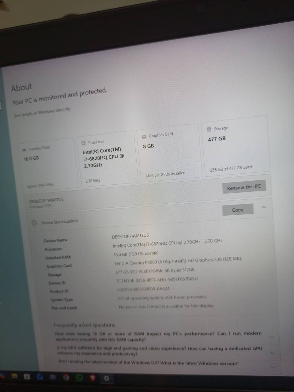 اخوان وصلتني لابتوب موديل dell precision 7720💻🔥 لابتوب Workstation المعالج (CPU): Core i7 فئة HQ كرت الشاشة : 8GB NVIDIA Quadro P4000.☑️ اضافة 8gb داخلي. الرام (RAM): 16GB DDR4☑️ الهارد (SSD): 512GB NVME اربع اماكن تخزين اربع اماكن رامات للتطوير الى 64 Gb كيبورد اضاءه ارجيبي☑️ الكرت مبني على معمارية Pascal القوية، يحتوي الكرت على 1792 نواة CUDA.بسرعة 1480 ميجاهرتز. يعني لتصاميم والمحاكاة الجداً جداً ثقيلة والمعقدة بسبب كرت الشاشة القوي ومشغل جيد جدا للالعاب الثقيلة. اذا ما تعرف بيه لا تتعبني رجاءا الشاشة: 17.3 بوصة FHD.☑️ الجهاز مجهز بـ مروحتين (Double Fan) للتبريد، يعني انسى شي اسمه حرارة واشتغل والعب براحتك حتى لو كربت عليه 24 ساعة. ✅ لأهل الألعاب: يشغل أقوى الألعاب (Assassin's Creed odyssey, ghost of tsushima ,) بسلاسة . للتواصل *********** يوجد توصيل 🚕