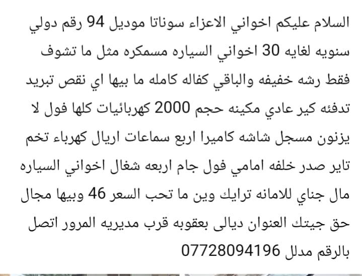 السلام عليكم اخوان تفاصيل داخل المنشور كل شيء واضح اخوان خصوص السياره سمكره جاهزه الرقم موجود اتصل وتدلل **إذا كنت صاحب هذا الإعلان وتريد حذفه لأي سبب، رجاءا أرسل رسالة إلى الدعم الفني**