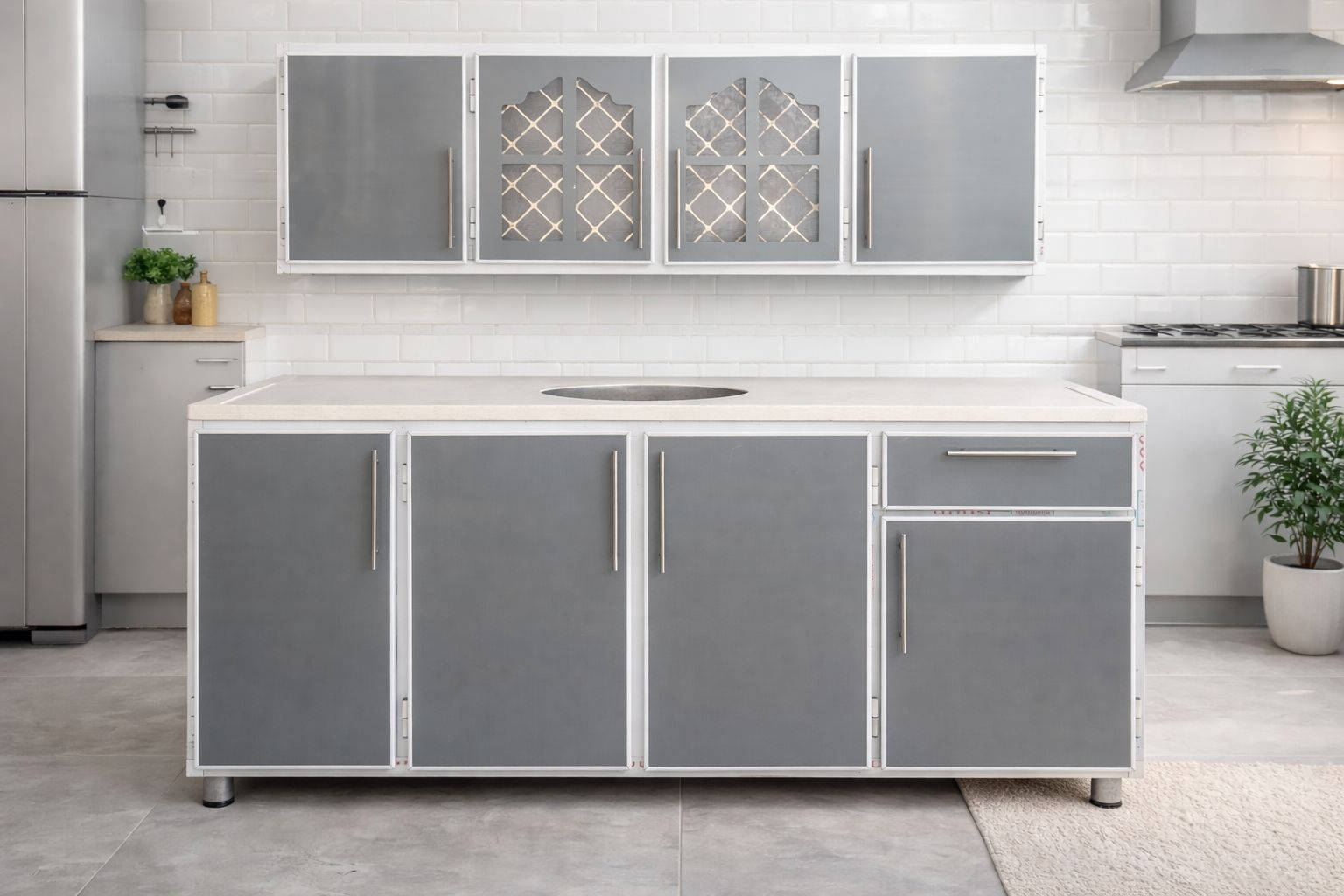 كاونتر أرضي • سنك مرمر ١٢٠سم • المنيوم ٠٫٧مم