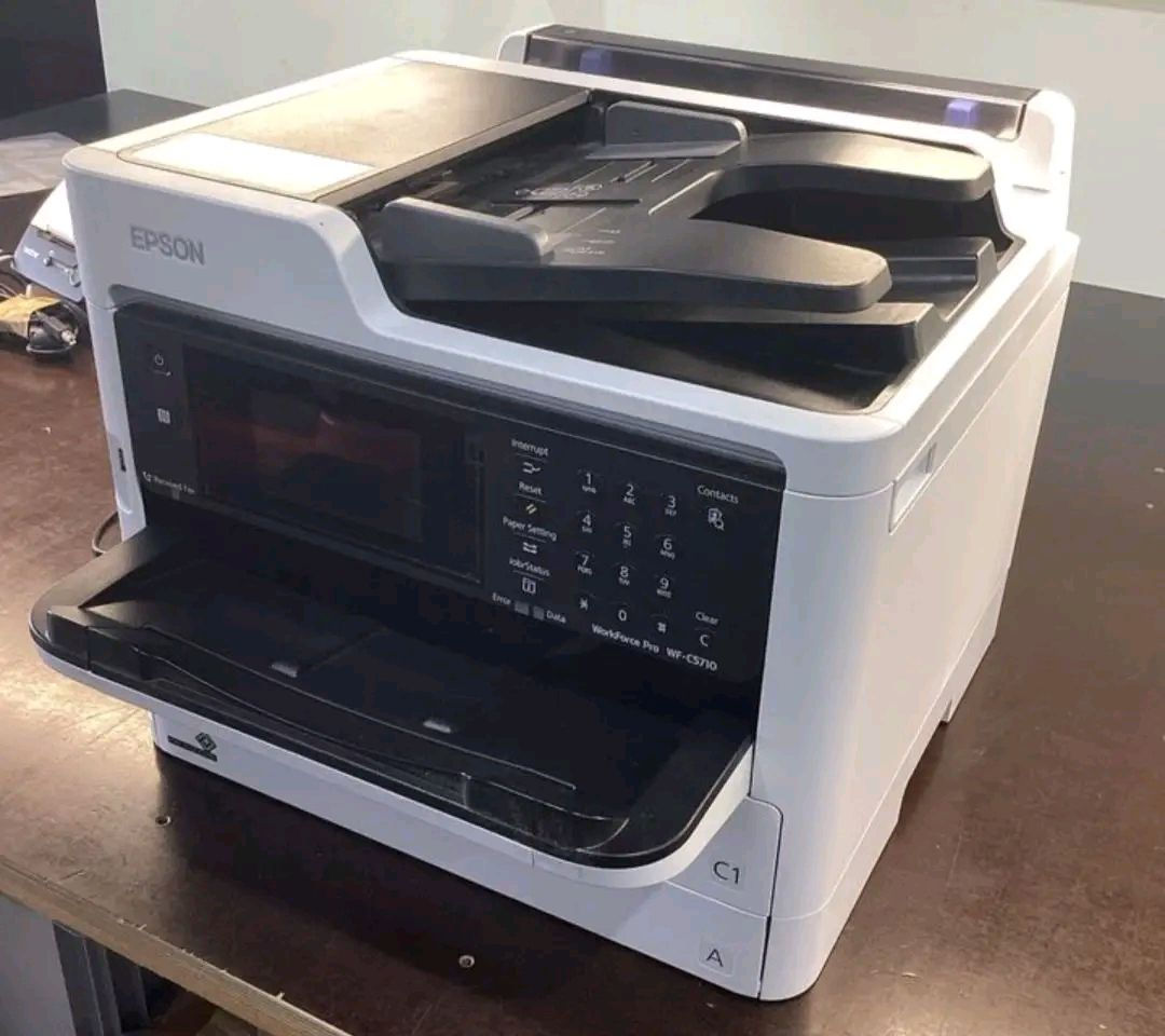 ☺️EPSON WorkForce WF-c5710😊 مستعمل أستنساخ - طباعة - سكنر. -فاكس طابعة أيبسون متطورة حديثة تجمع المتانة وتقليل تكلفة الطباعة .. حجم الورق A4 هيد ٤ لون فيدر قلاب وجهين ملون -عادي (أحادي اللون) أستنساخ المستمسكات على الوجهين دوبليكس دقة صورة الاستنساخ دي بي آي ٦٠٠/١٢٠٠ الطباعة طباعة ورق الفوتو (ورق الصور ) دقة عالية جداااا في طباعة الصور تصل حتى ١٢٠٠/٤٨٠٠دي بي آي طباعة ورق المكربن (ورق الوصولات) سرعة الطباعة ٢٢ صفحة بالدقيقة طباعة دوبليكس على الوجهين الطباعة دايركت واي فاي مباشر بدون كيبل سكنر ارشفة. للملازم والمستمسكات لغة عربية **إذا كنت صاحب هذا الإعلان وتريد حذفه لأي سبب، رجاءا أرسل رسالة إلى الدعم الفني**