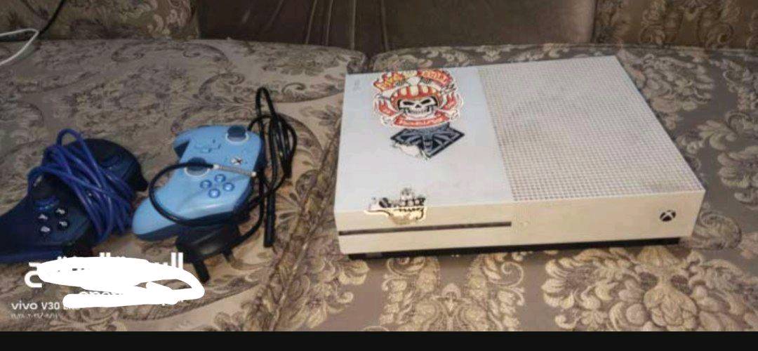 معروض للبيع جهاز Xbox مع يدين تحكم باللونين الأزرق والأزرق الغامق. الجهاز بحالة جيدة مع إضافة بعض الملصقات للزينة. لا يوجد عيوب مرئية واليدين بحالة ممتازة وجاهزة للاستخدام. مناسب لهواة الألعاب ويضيف تجربة ممتعة وجميلة.