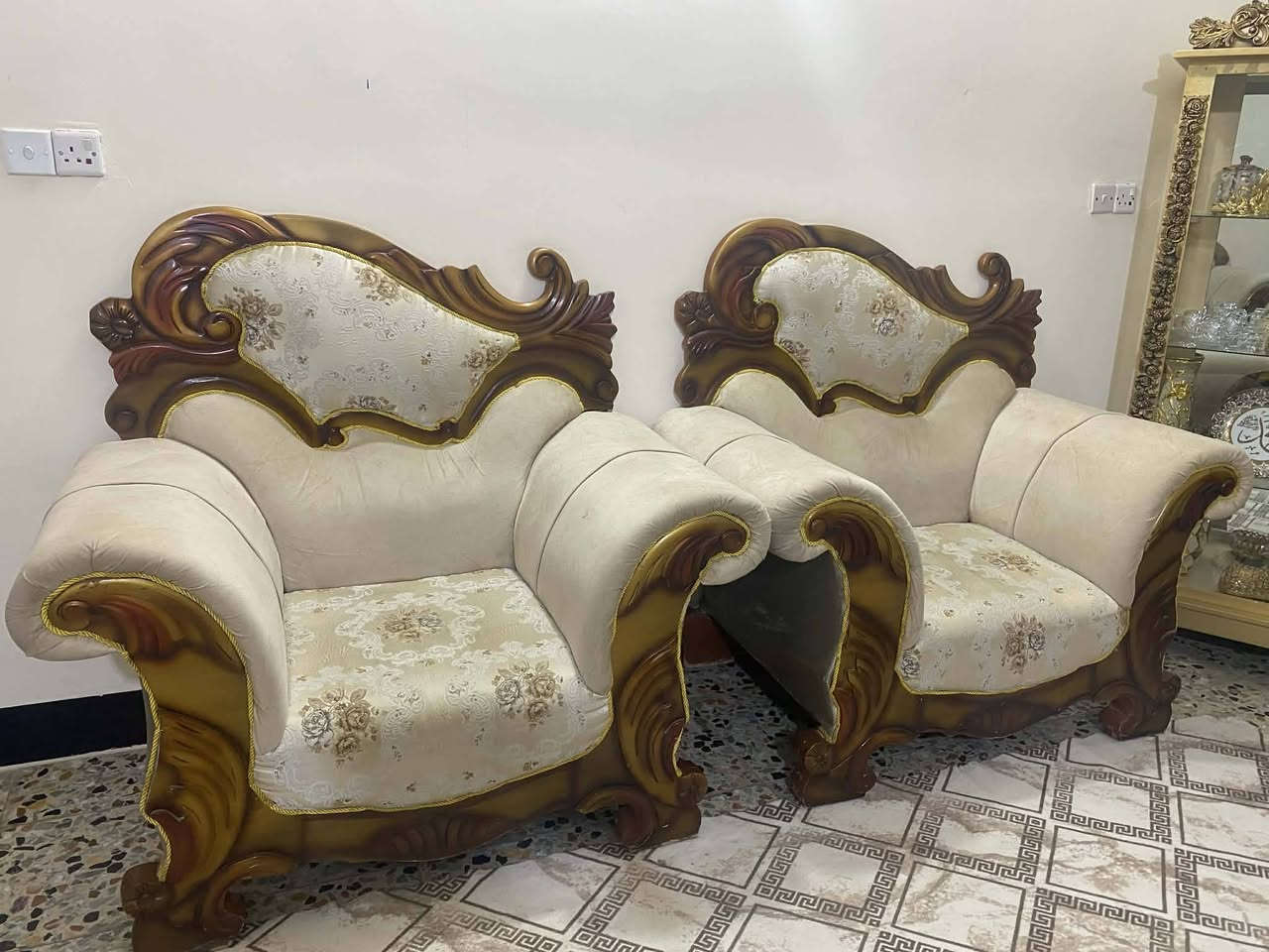 قنفات ملكي • اوف وايت ذهبي • طقم ٣+٢+٤