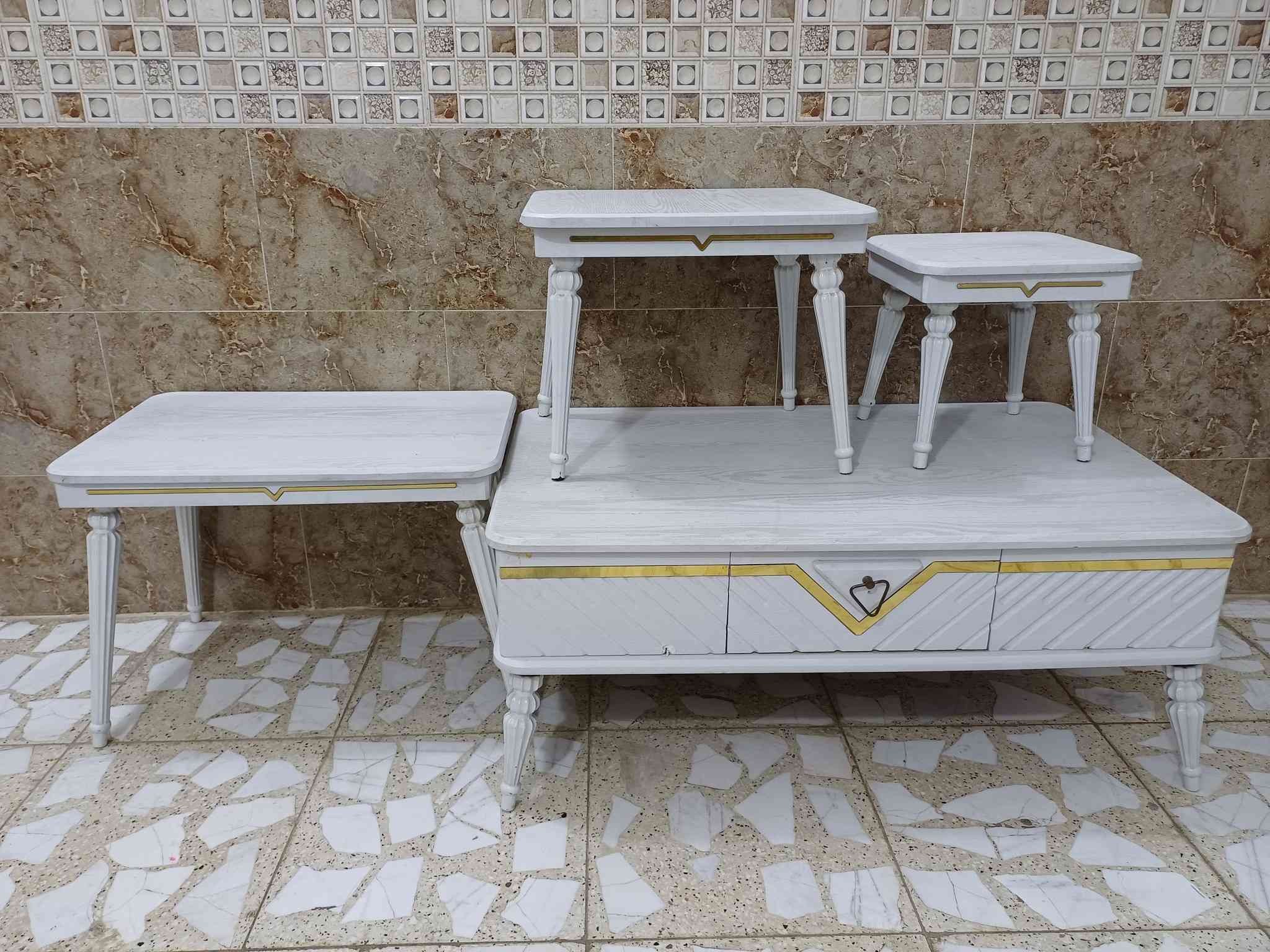 طبله وسطية • خشب صاج • طاولات جانبيات