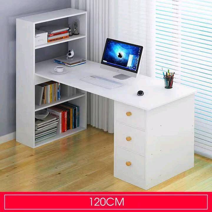 هذا ميز مكتبي أنيق وعصري، مصنوع من الخشب ومتوفر بلونين: الأبيض والخشبي الفاتح. يمتاز بوجود رفوف متعددة وأدراج لتخزين الكتب والملفات، ويبلغ طوله 120 سم، ما يجعله مثالي للمكاتب أو غرف الدراسة.