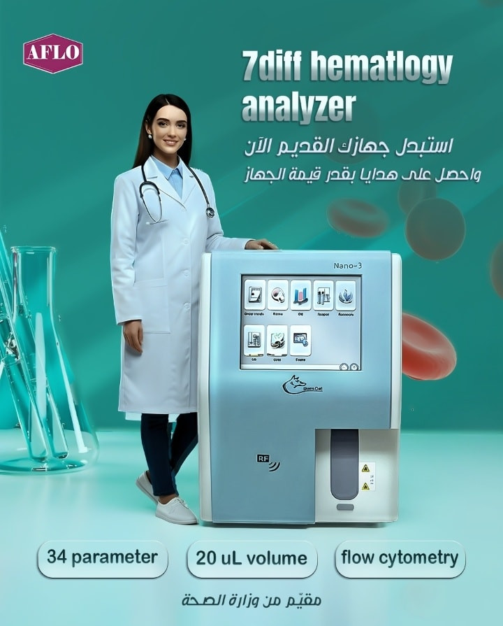 Hematology Analyzer Genolabtek USA🇺🇸 💥Flow cytometry (FCM)+ Tri-angle laser scatter 💥 7part - differential 5 types of WBC, Large amateur cells , atypical lymphocytes, nucleated RBC , CSF 🌷ضمان حقيقي (7) سنوات . 🌷سريع بإعطاء النتائج 33 باراميترز 60 عينة بالساعة 🌷نظام الكابلري للاطفال والتخفيف المسبق للعينة 🌷شاشة Touch Screen و حجم مثالي 🌷خزن 100،000 نتيجة 🌷يعمل بثلاث محاليل ذات ثباتية ودقة عالية لمزيد من المعلومات نرجو التواصل عبر هاتف الشركة ( ***********) #Nano5 #Nano3 #Hematology