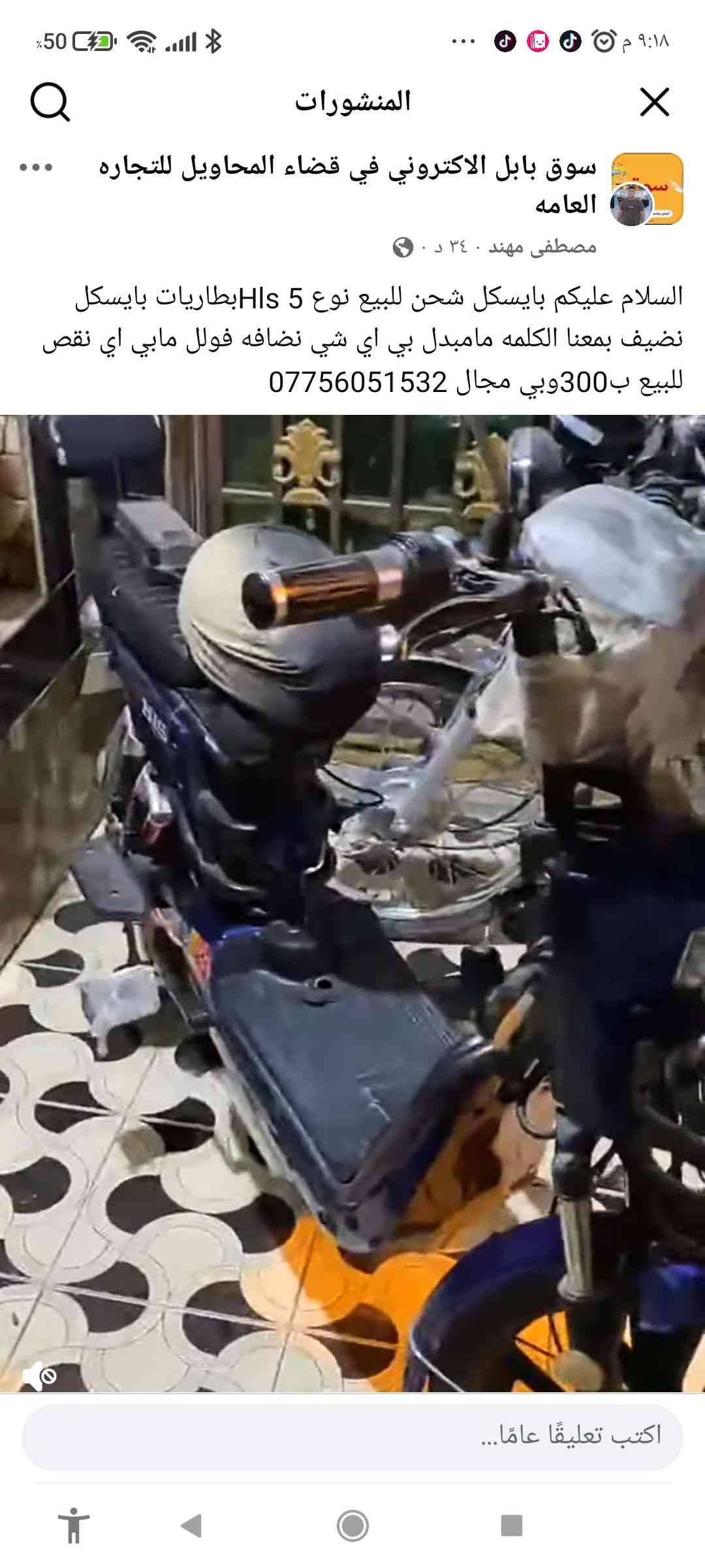 دراجة شحن • بطاريات جديدة • بعقوبه باب الدرب
