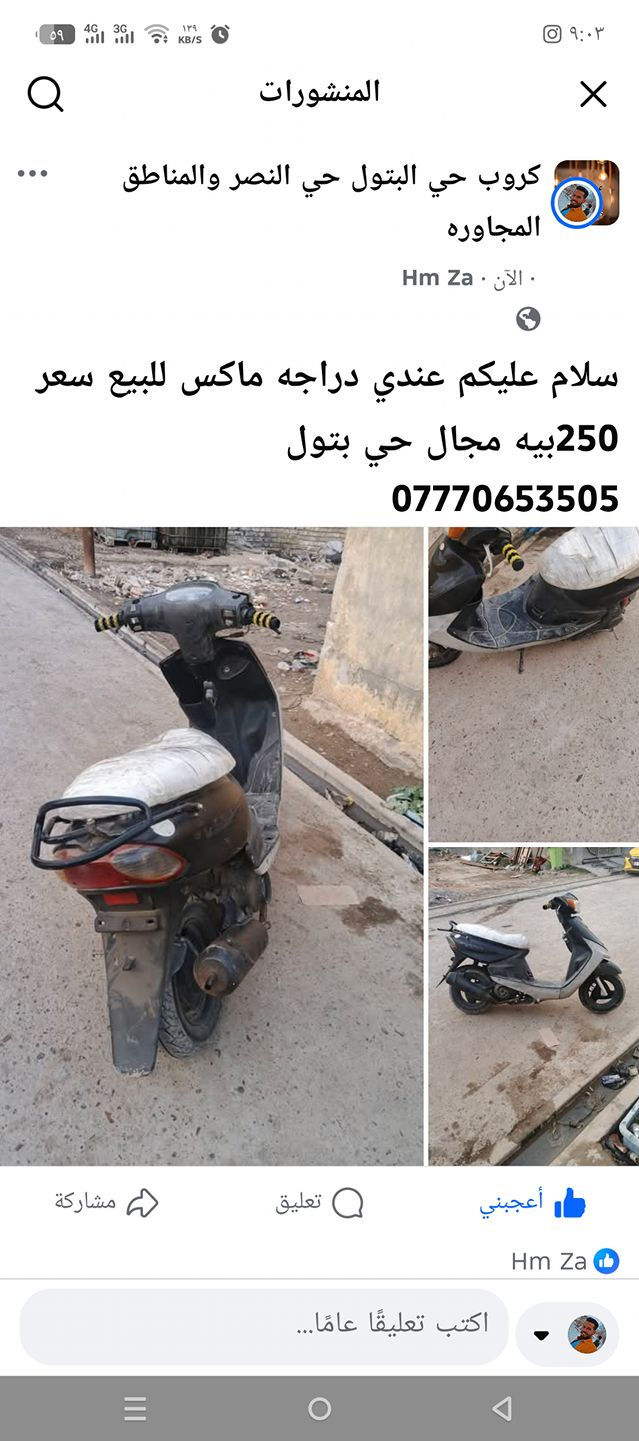 دراجة زعرة • كهربائيات شغال • حي العسكري الصدر الاول