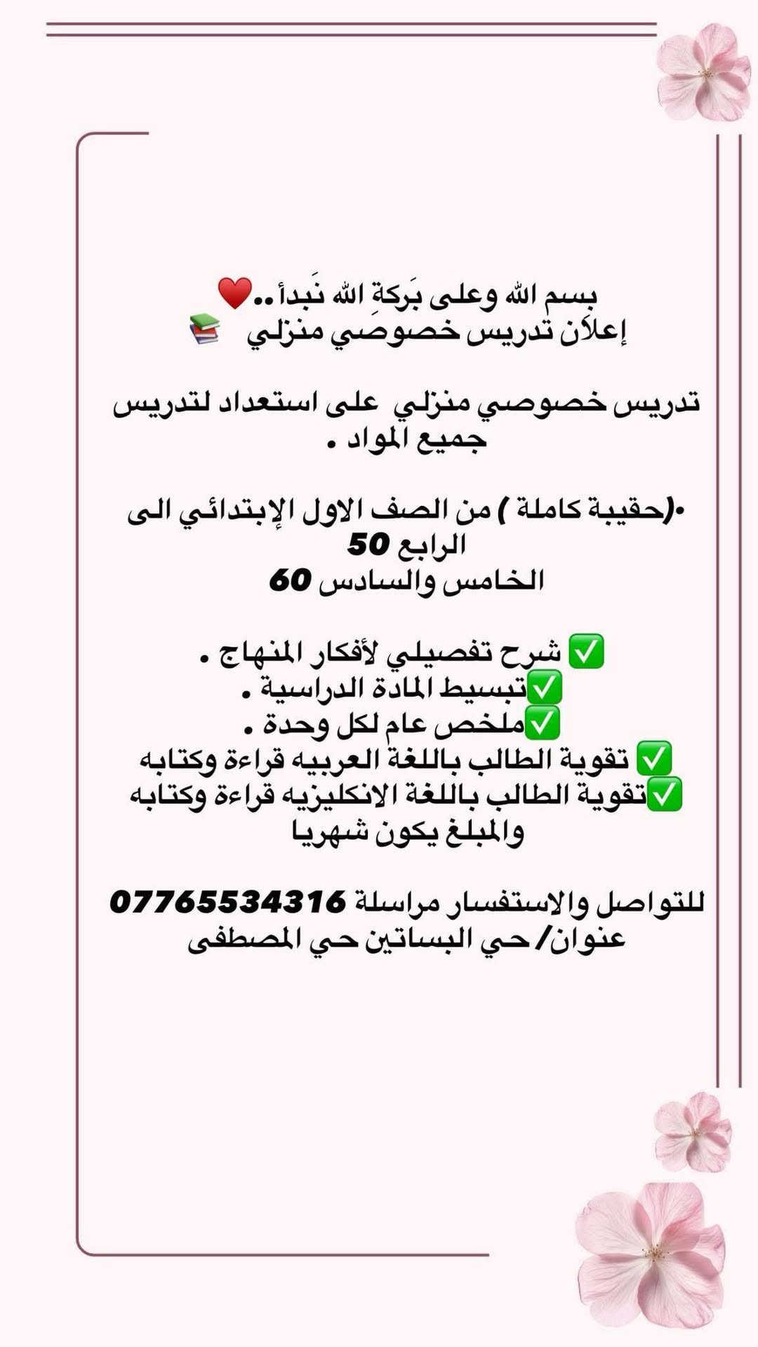 دروس خصوصية • ابتدائي متوسط اعدادي • المنصور الداودي
