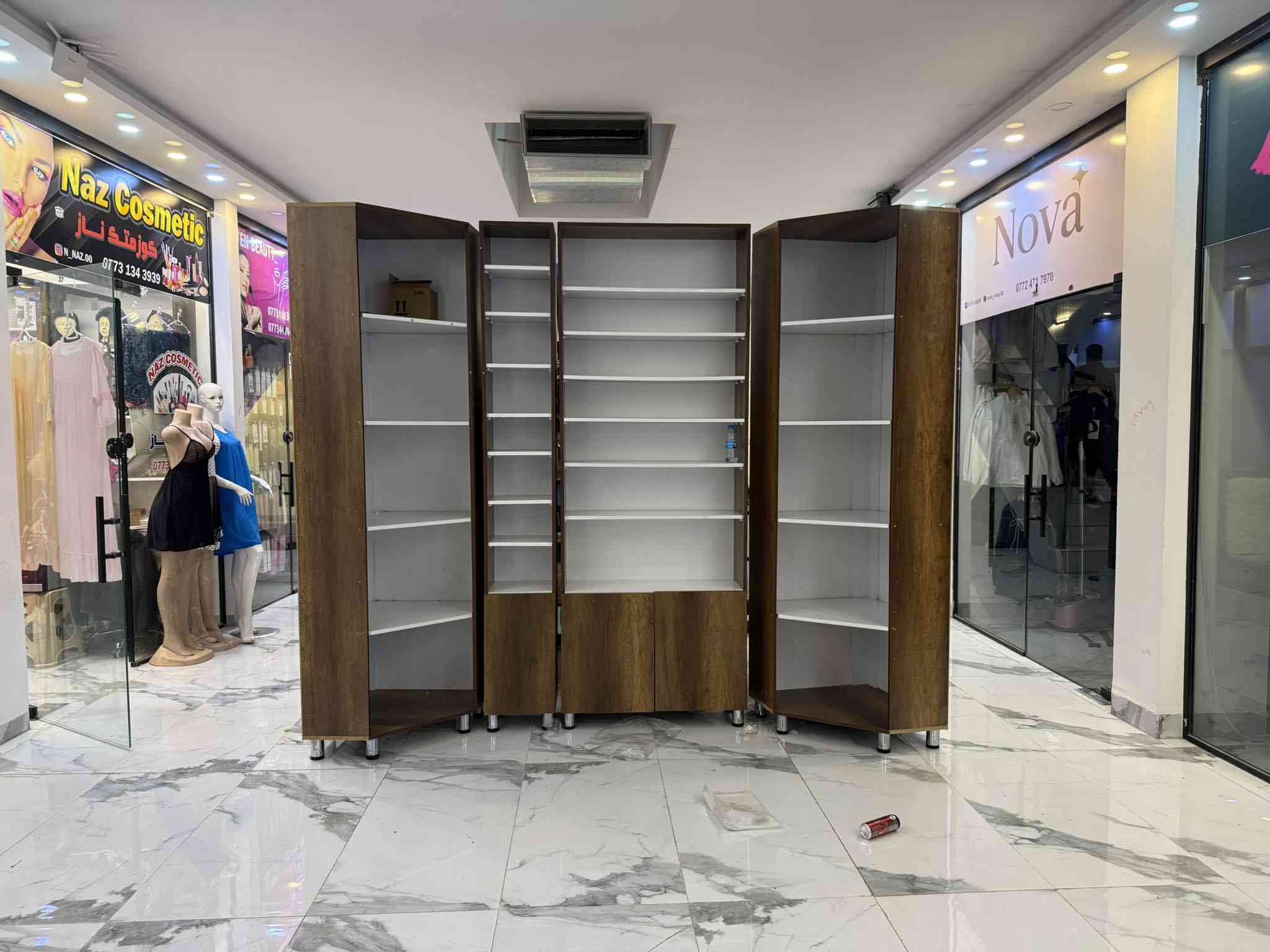 رفوف عرض • فاترينات MDF • خشب طبيعي