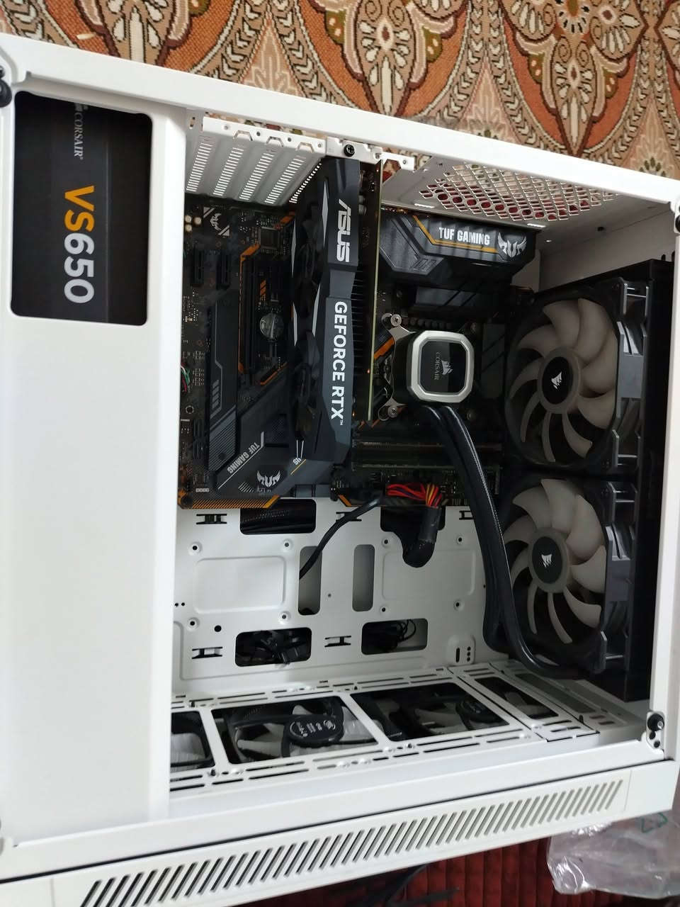 Case matrexx 55v3 Power supply 650w corsair vs650 Rtx 3050 asus dual 6g Z390 asus tuf gaming plus wifi I7-9700k Ram 8g ddr4 2*4 M.2 NVME 256g wd Black Cooler corsair H115i PRO 280m السعر ٦٢٥ الف وبيها مجال مكاني بغداد الشعب *********** توصيل داخل بغداد فقط