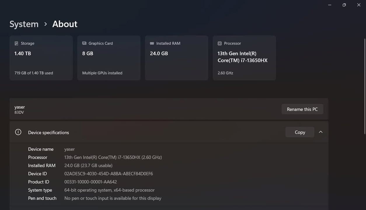 السلام عليكم حاسبة Lenovo LOQ مواصفات المعالج i7 نوعة hx السريع جيل 13 كرت الشاشة RTX 4060 الرامات 24 GB الهارد تيرا ونص الحاسبة مستخدمة كلش قليل (جديدة) وبعدها بل ضمان اريد مراوس بماك للتواصل واتساب : ***********