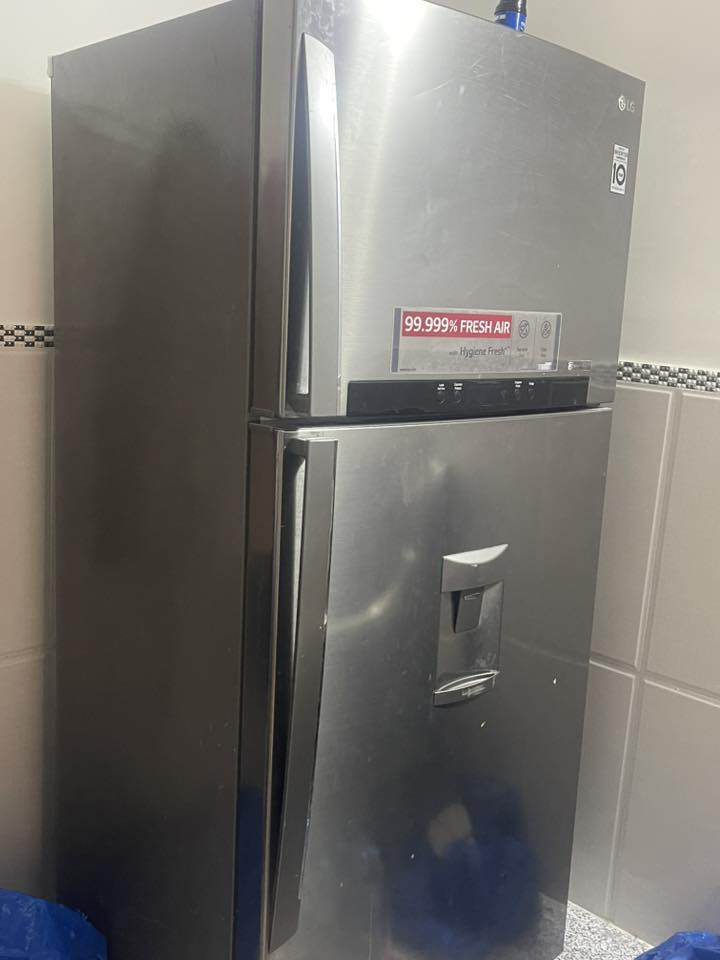 السلام عليكم ثلاجة lg حجم كبير جيدة جداً نظيفة للبيع سعرها 500 ***********