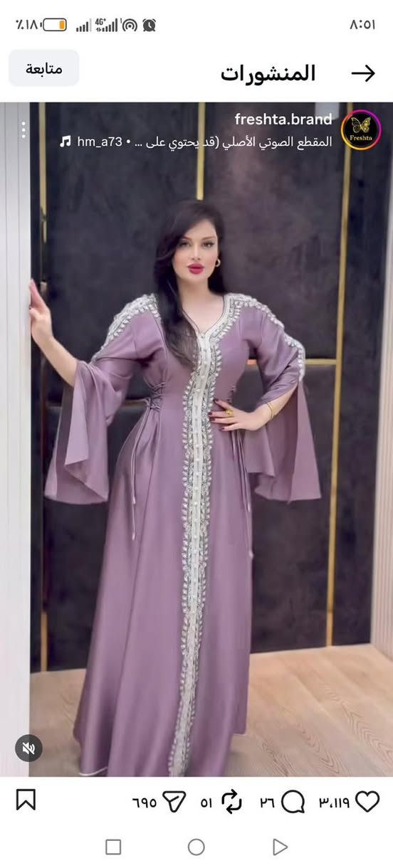 عندي هاد القفطان لون بنفسجي اشتريتو ١٨٠ سعر البيع ٨٠ ملبوس ساعتين فقط مقاس ٤٢ .. ***********