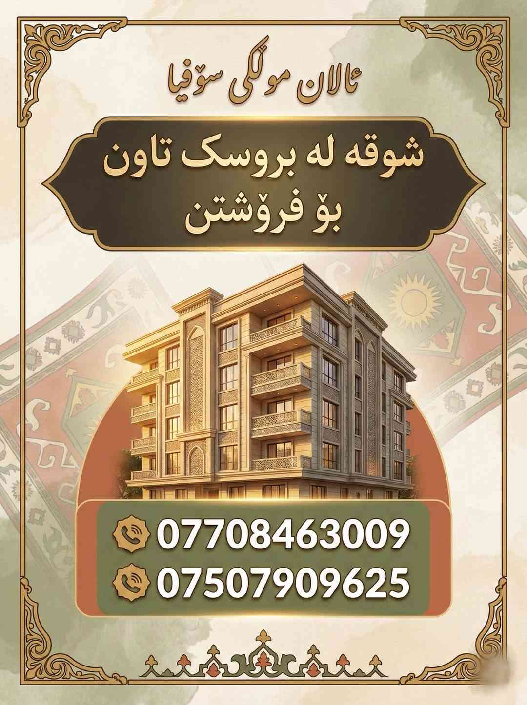شووقە لە برووسک تاون بۆ فرۆشتن ١٨٦ م سێ نوستن ڕووی ڕۆژهەڵات و قیبلە نهۆمی نزم