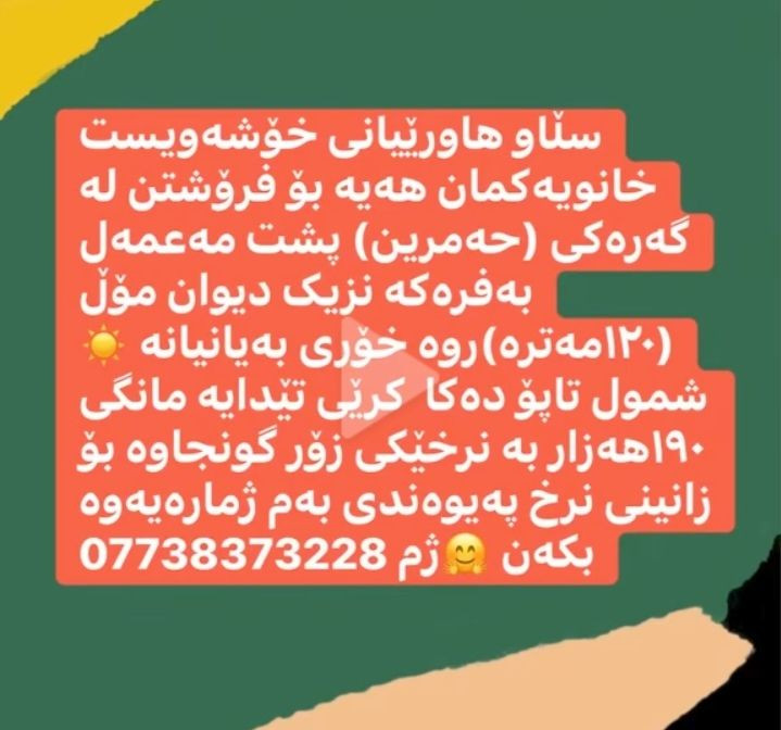 خانوومان هەیە بۆ فرۆشتن 👇👇