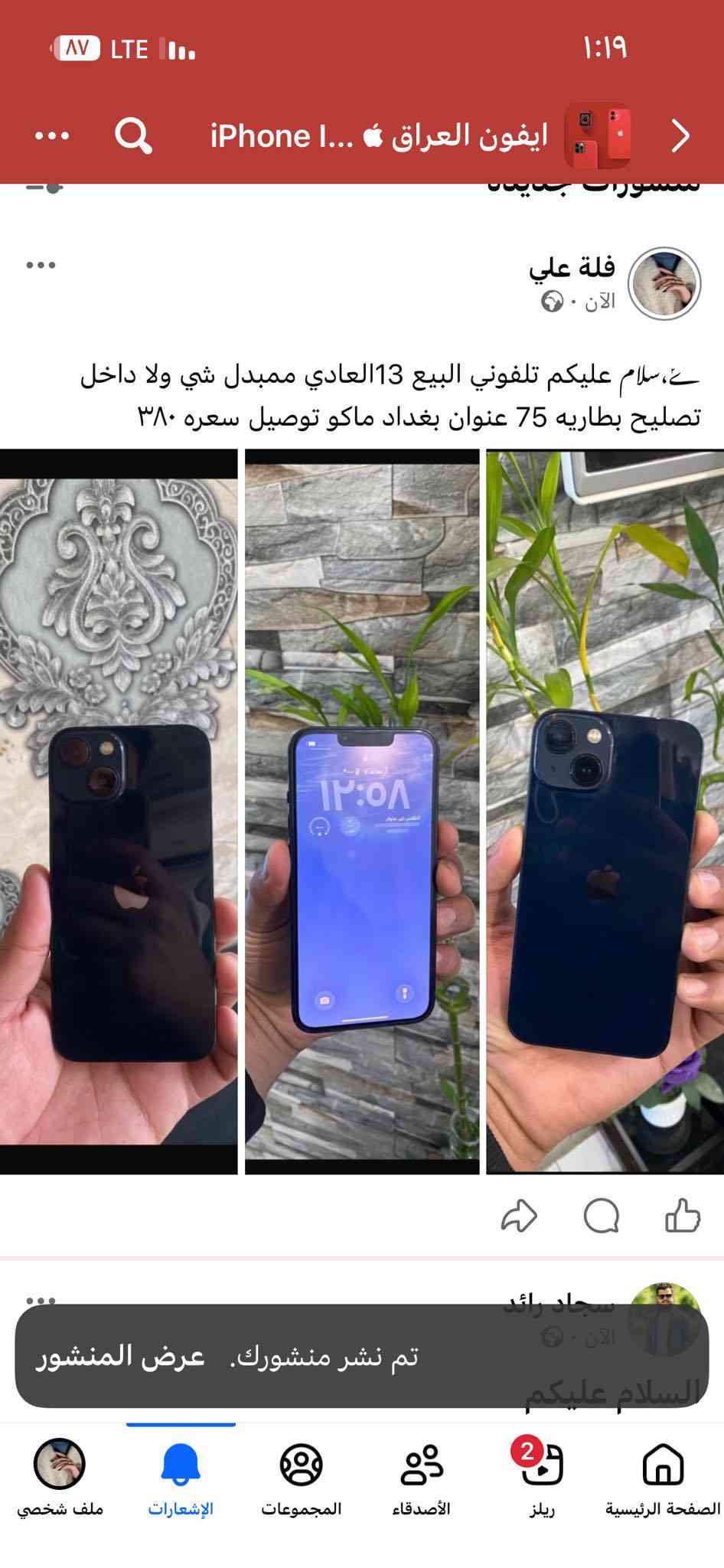 ايفون ١٣ ١٢٨ • بطارية مبدلة • شاشة زينة