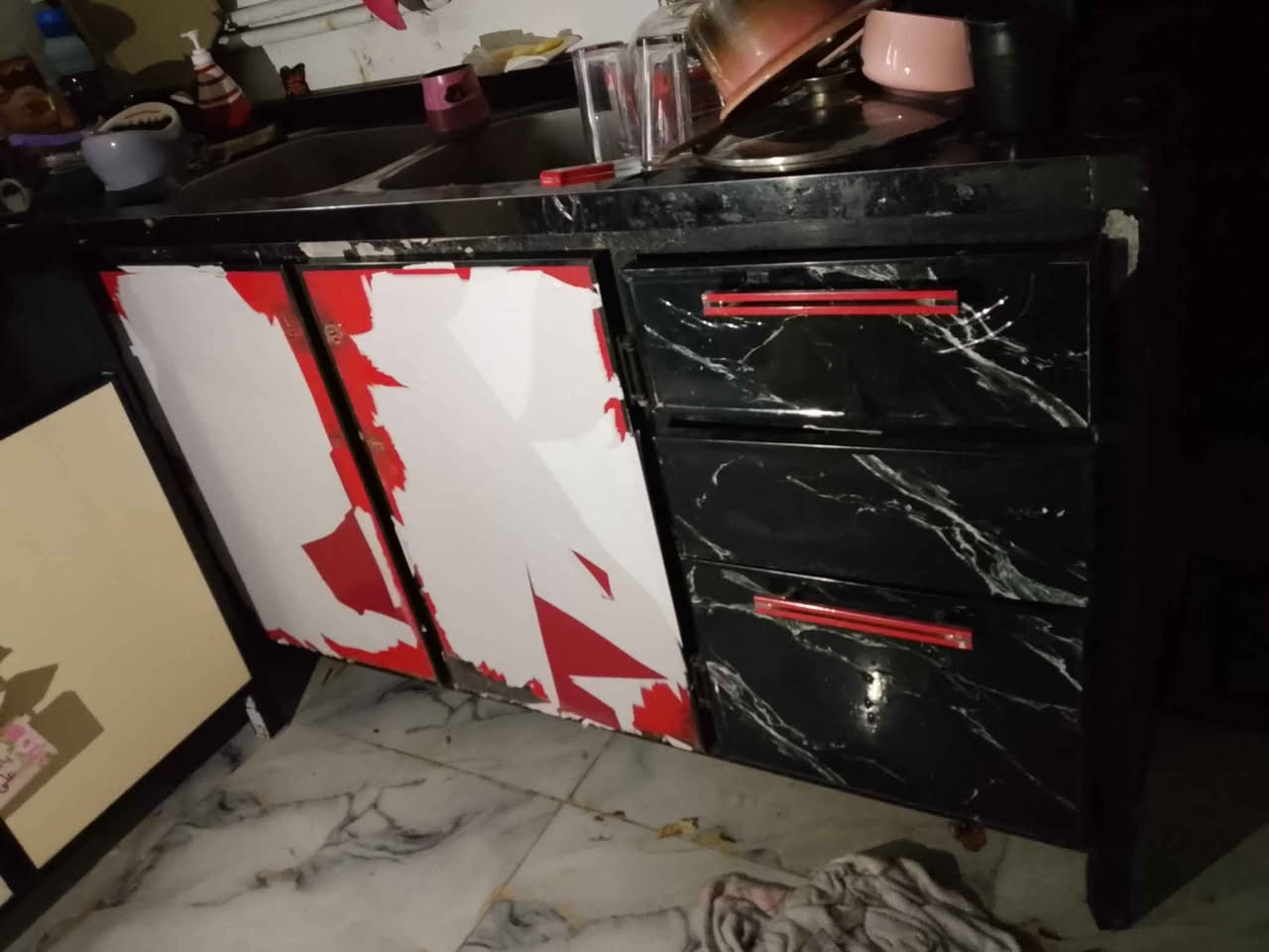 كاونتر ألمنيوم • جرارات خشب • سلة مواعين