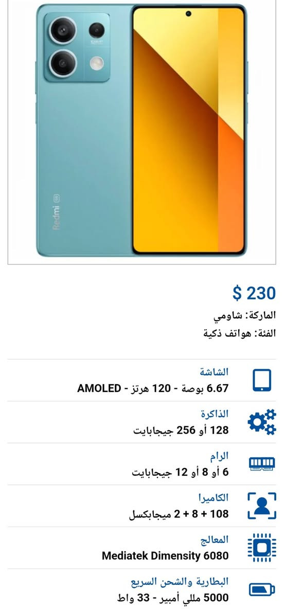 جهاز ريدمي نوت 13 5g نظافته ميه بالميه ذاكرة 128 والعشوائية 6+6 ملحقاته فقط حافظه ولزگه مظلل للبيع أو مراوس بأجهزة ريلمي حصراً **إذا كنت صاحب هذا الإعلان وتريد حذفه لأي سبب، رجاءا أرسل رسالة إلى الدعم الفني**