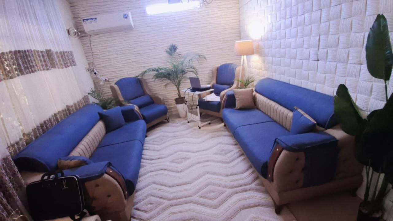 كنب نيلي • ٩ مقاعد • ٢ كراسي