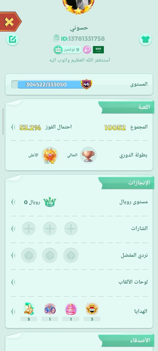 حساب لودو للبيع قيم بل يرضئ الله وخذ مكان كركوك تفاصيل بصور **إذا كنت صاحب هذا الإعلان وتريد حذفه لأي سبب، رجاءا أرسل رسالة إلى الدعم الفني**