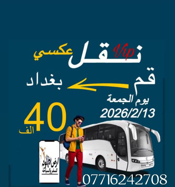 يتوفر لدينا عوده من قم المقدسة الى بغداد يوم جمعه الصبح وقت الإنطلاق ساعه 10صبح سارع بلحجز مقاعد محدوده تواصل والحجز على واتساب ***********